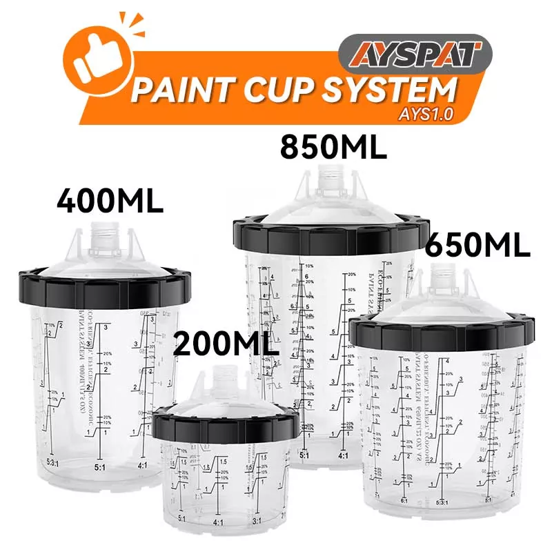 800ML Disposable Paint Cup System 1.0 gør det nemt og bekvemt at blande og sprøjte maling, samtidig med at det forenkler rengøring og opbevaring af maling. Ikke mere at overføre produkter til separate beholdere – bare brugindvendige engangskopperat blande, sprøjte og opbevare forskellige malingsfarver separat, hvilket eliminerer malingsstænk. AYSPAT engangsspraykopløsningen er designet til hyppige farveskift, hvilket reducerer oprydningstiden og brugen af opløsningsmidler.