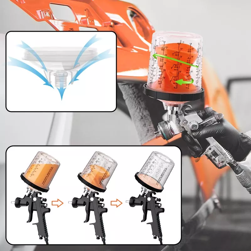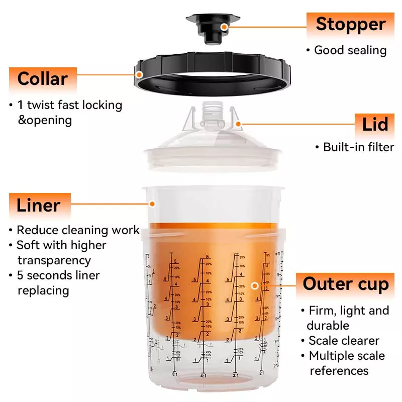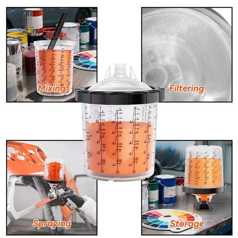 800ML Disposable Paint Cup System 1.0 rummer 28,5 fl oz (850 ml) maling ,det er ideelt til 4-panelsreparationer eller eller derunder af materiale, inklusive store partier med klarlak. Denne serie er udviklet for at forbedre arbejdseffektiviteten og sprøjtekvaliteten for at imødekomme forventningerne til enhver engangsspray, der kan genbruges. kopper, fordi det gør sprøjteprocessen renere og mere effektiv. Maling kan blandes direkte i sprøjtekoppen, og der kræves kun minimal oprydning efter hver brug. Hvis du ønsker at engros engangssprøjtepistol, bedes du kontakte os for at få gratis prøver til test.
