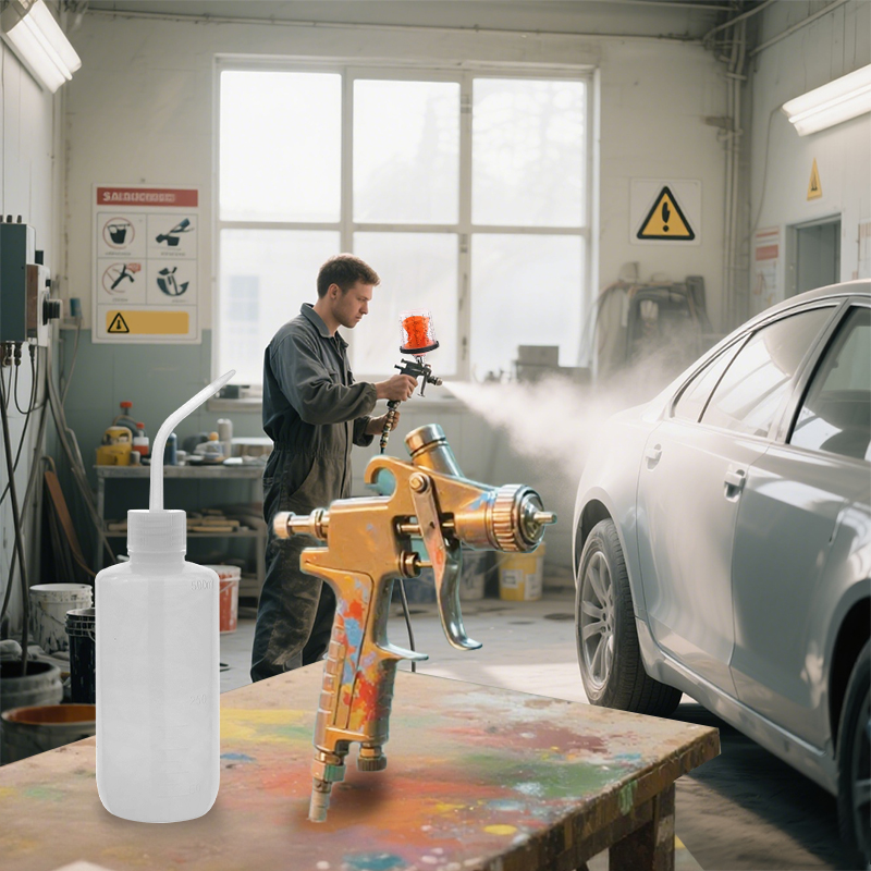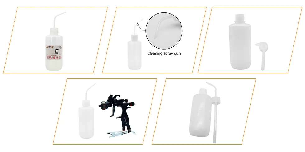 AYSPAT sprøjtepistol vaskepotte er et effektivt sprøjtepistol rengøringsværktøj med fremragende renseeffekt. Den kan hurtigt skylle den maling, der er tilbage i sprøjtepistolen, hvilket bedre kan beskytte præcisionsdelene inde i sprøjtepistolen. Spraypistolen er nem at betjene, og væskestrømmens intensitet og retning kan styres præcist ved at klemme på flaskens krop. Efter maleoperationen skal du bruge pistolvaskegryden til at fylde opløsningsmidlet for at skylle pletterne af de komplekse rør inde i sprøjtepistolen, hvilket kan opretholde sprøjtepistolen og forlænge dens levetid betydeligt. Pistolvaskeflasken er lavet af blødt og let PP-materiale, som er modstandsdygtigt over for korrosion fra opløsningsmidler som acetone og toluen. Det er en ideel løsning til vedligeholdelse af din sprøjtepistol.