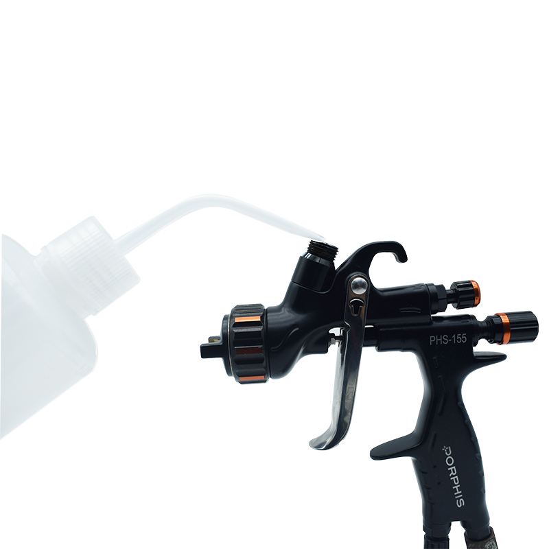 Sprøjtepistolens vaskepotte bruger en unik buet dyse, der kan trænge dybt ind i sprøjtepistolen og hurtigt skylle maling og snavs ud af hullerne inde i sprøjtepistolen. Dyb rengøring kan effektivt forhindre tilstopning forårsaget af indtørret maling, forbedre sprøjteydelsen og forlænge sprøjtepistolens levetid.